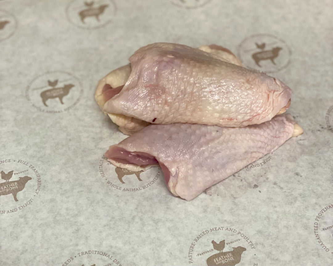 We offer certified organic, white broiler chickens and Grassland Sommerlad Heritage breed chickens. All our poultry is pasture-raised on chemical-free, regeneratively-managed pastures, all feed is medication-free and the birds are processed without bleach or chemicals.